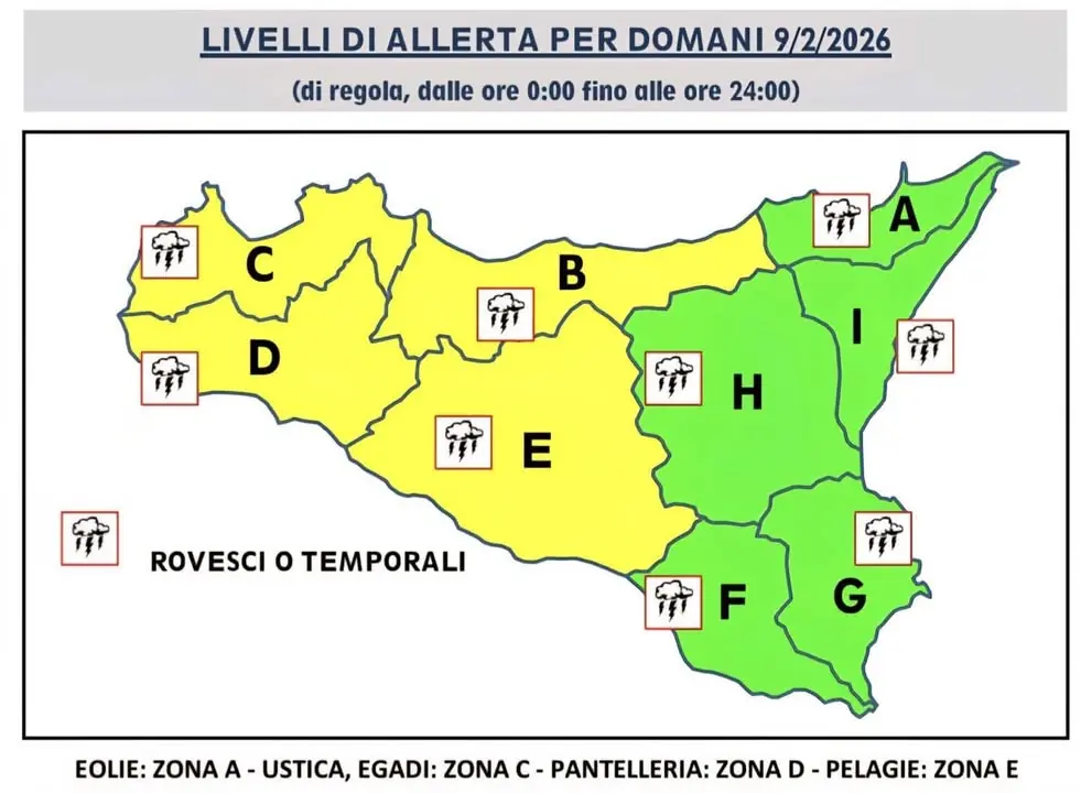 ⏰Il Dipartimento regionale della Protezione civile regionale ha emesso un avviso di allerta meteo GIALLO valido per la giornata del 9 Febbraio. ⚠️ Invitiamo tutta la cittadinanza alla massima prudenza. Comportamenti raccomandati: 📍Limitare gli spostamenti non necessari. 📍Evitare passerelle, ponti e
