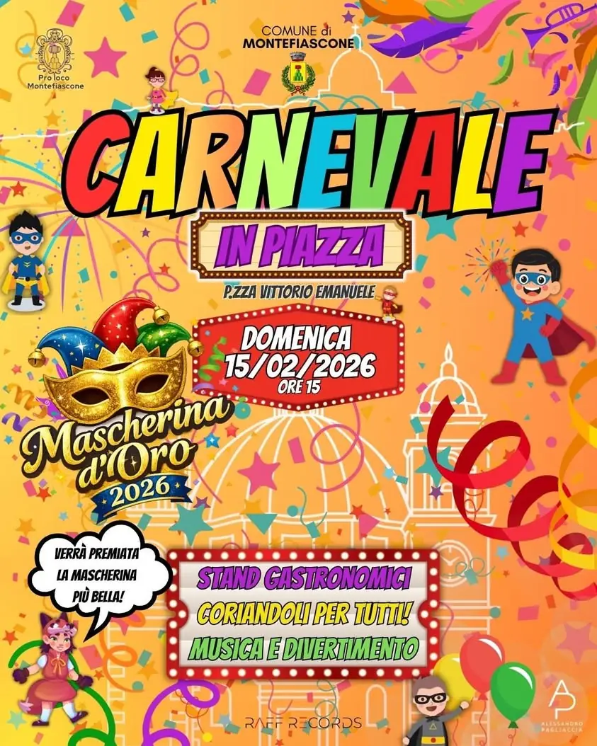 🎉✨Il Carnevale colora Montefiascone! ✨🎉 Un pomeriggio di festa tutto da vivere, tra musica, sorrisi e tanta allegria 🎶 vi aspetta a 📍 Montefiascone in Piazza Vittorio Emanuele 🕒 a partire dalle ore 15:00 🤡🎊👺 Un evento pensato per bambini, famiglie e visitatori, con musica per tutto il pomeriggio, co